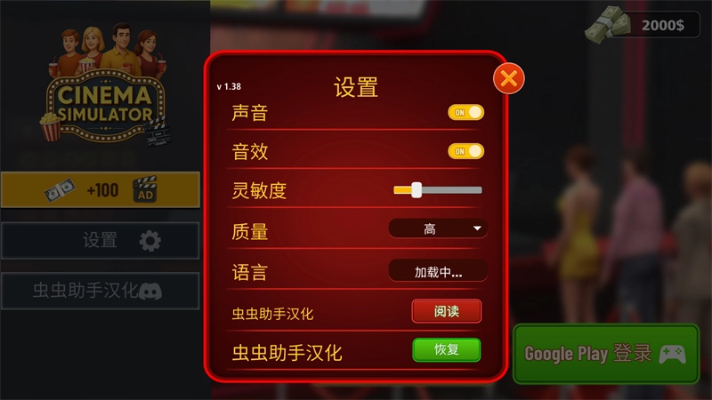 1、首先在本站并安装电影院模拟器,安装完成后我们可以直接打开游戏进入到主界面。