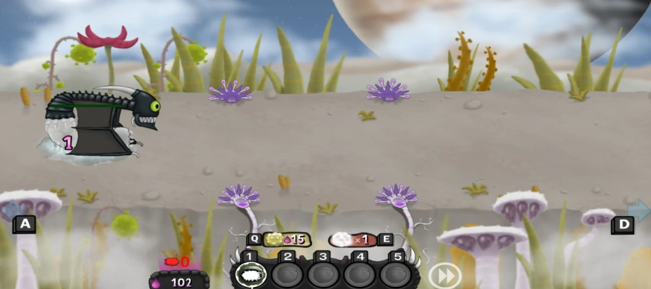 3、视觉风格:以卡通画风构建别具一格的异虫世界,搭配清晰的2D横版画面视角,使玩家能从微观视角感受宏观战略的趣味。