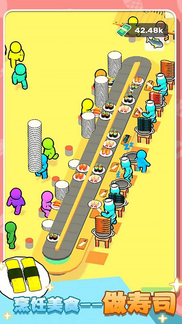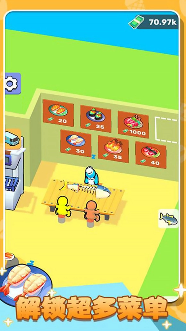 员工系统:借助招募、升级以及分配不同类型的员工岗位,提高出餐速度与服务质量,使你的寿司店能够全天高效运转,从容应对顾客高峰期。