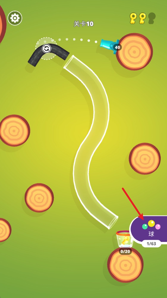 7、例如新的关卡中,需要进行不同的调整,让小球继续掉落到杯中。