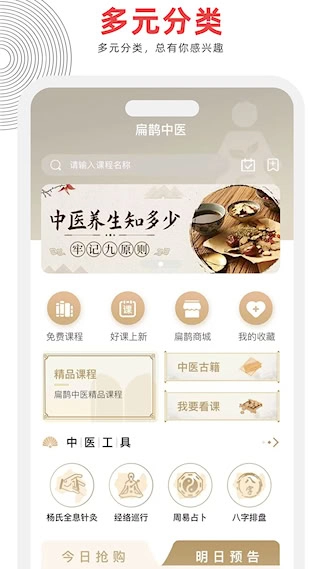 扁鹊中医是一款专注于中医养生的专业应用。平台上汇聚了丰富的中医资讯,设有五大中医新闻板块,内容每日更新,方便用户及时了解行业最新动态。同时,这里还汇集了众多行业专家的视频与音频课程,涵盖中医学习的各个领域,从经典理论到临床实践,从针灸推拿到方剂药理,能够满足不同学习阶段用户的需求。此外,应用还具备智能推荐功能,会根据用户的浏览历史,推送相关的中医文章、方剂或养生建议,帮助用户提升学习效率。