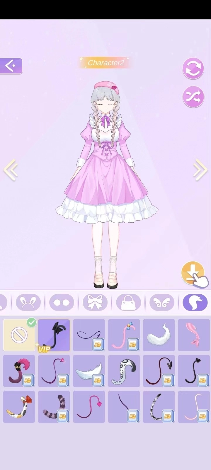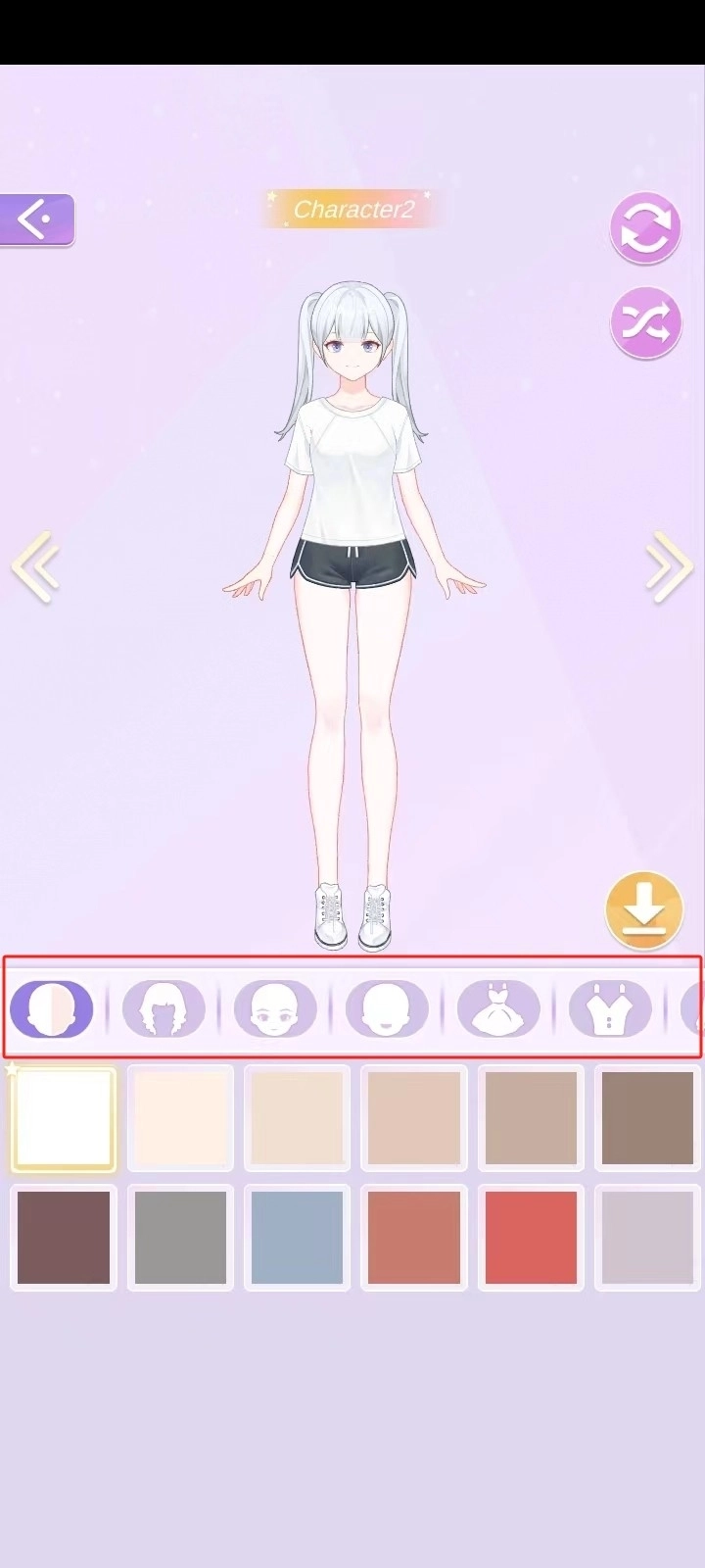 进入角色装扮界面后,你可以对角色的肤色、发型、眼睛、嘴巴等五官细节进行调整,同时还能更换服装、鞋子、发饰等各类配件,选择十分丰富,支持自由搭配;此外,本版本不存在广告,所有物品都无需通过观看广告来获取。