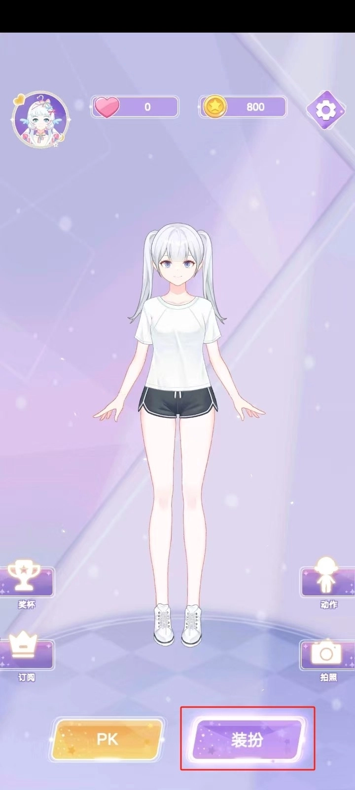 回到主界面后,已经保存好装扮完成的角色,点击【拍照】按钮即可进入拍摄模式。
