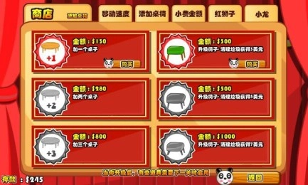 玩家能够通过赚取金币,持续对餐馆的设备与装饰进行升级,以此提升餐馆的品质和吸引力。