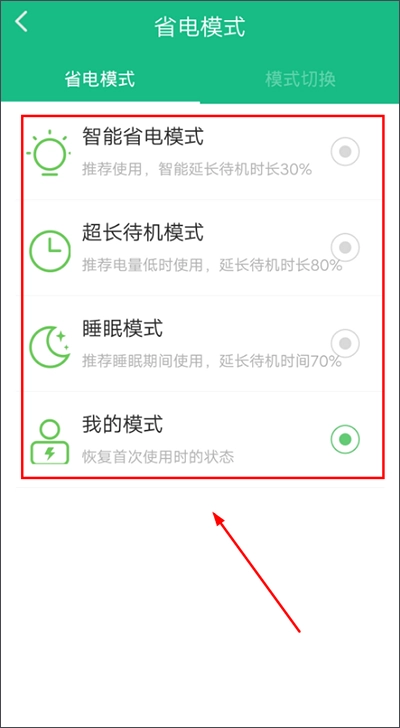 在【模式】页面点击【省电模式】,这属于手动设置:用户能够依据自身手机的电量状况,选择并设置适配当前情况的省电模式。