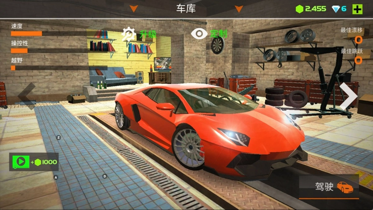 进入游戏后,先进入车库挑选豪车。