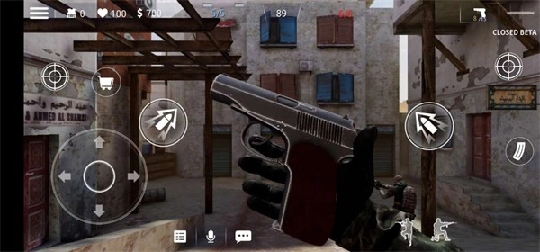 3、游戏开局时,初始配备的武器是手枪,获胜的概率相对较低。你可以点击方向键上方的购物图标,去购买更高级别的武器。