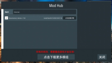 2、在游戏本地的mod模组文件后,我们需要重启一次游戏,才可在游戏中找到mod文件,如下图所示;