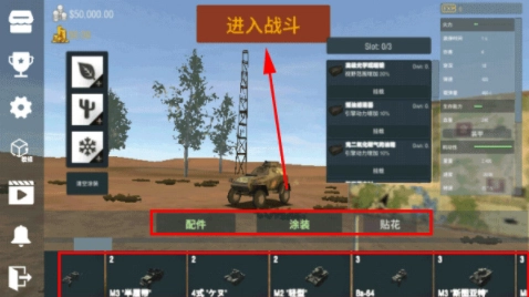 5、我们选择到想要体验的武器类型后,还可对驾驶载具的配件、涂装、贴花进行自定义的设置。都确定完成后即可点击“进入战斗”