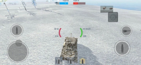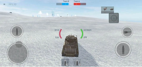 点击创建按钮后系统会开始加载,加载完成后可以选择载具和炮弹,选定后点击加入战斗即可进入游戏。屏幕上方中间的数字显示战斗剩余时间,若时间结束后选择继续游戏,该数字会变为负数。屏幕左右两侧分别显示双方的击毁人数,左侧代表B方,右侧代表A方。带有绿色血条的是队友,红色血条(仅在瞄准敌人时显示)或无血条的则是敌人。