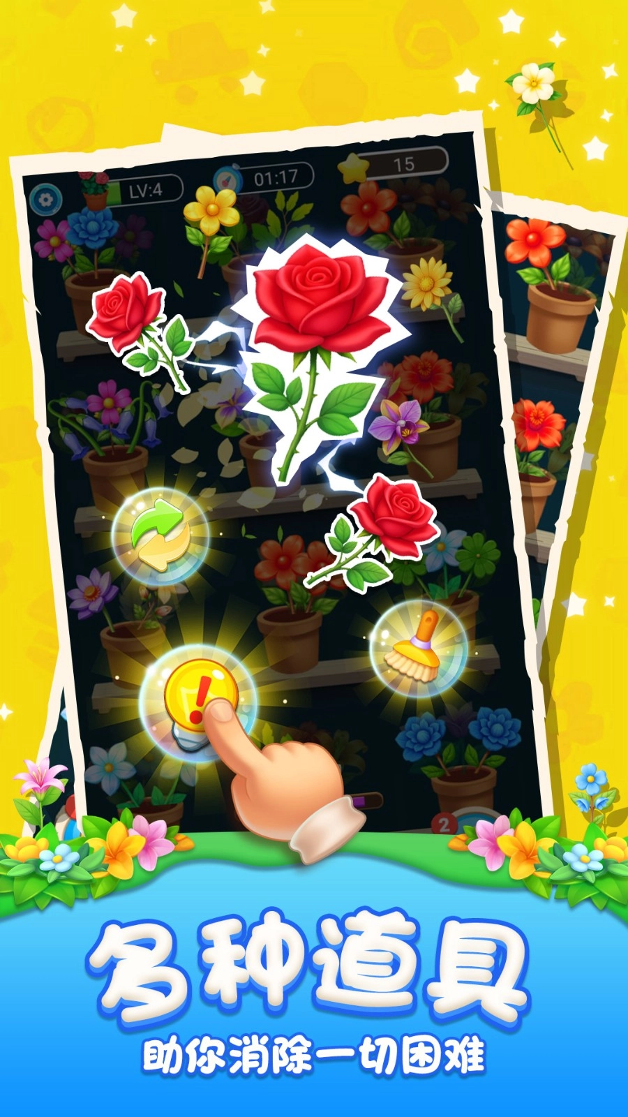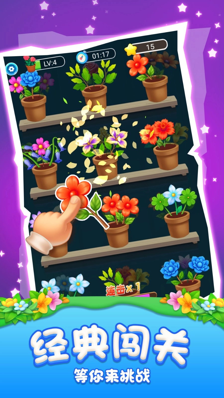 每一关都设有步数或时间限制,玩家需在规定条件内完成收集特定花色、清除障碍物等多种不同的通关任务。