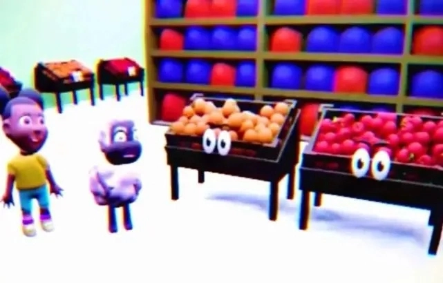 第一次输入“苹果”,走进商店查看苹果这类水果,之后再次输入“苹果”,不过很明显,羊并不喜欢苹果,第一章就此结束。