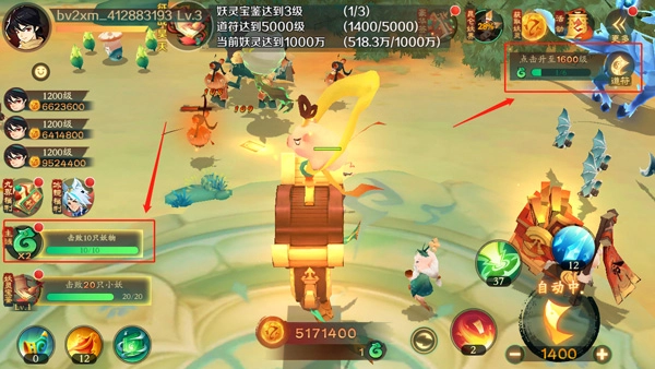 2、攻击有几率触发致命一击,触发后怪物立即被击败,并且获得妖灵奖励。怪物倍数越高,妖灵奖励越多,但是也越难触发致命一击。