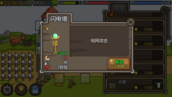 5、通过不断的升级城堡、训练士兵、建造塔楼就可以轻松通关了。