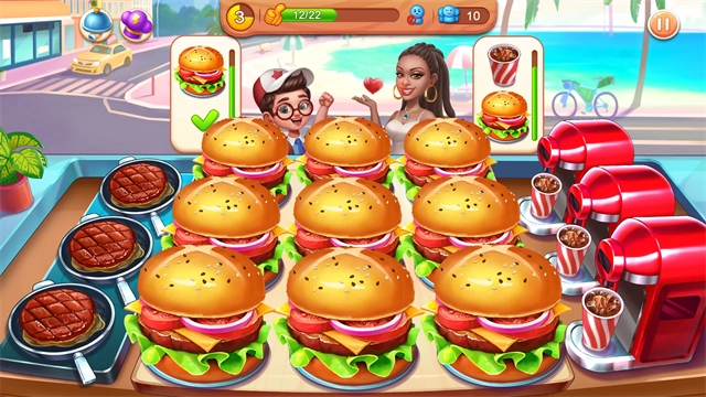多样的烹饪关卡满足不同挑战需求,需在限定时间内完成订单需求通关,完成关卡可解锁更多美食食材类型。