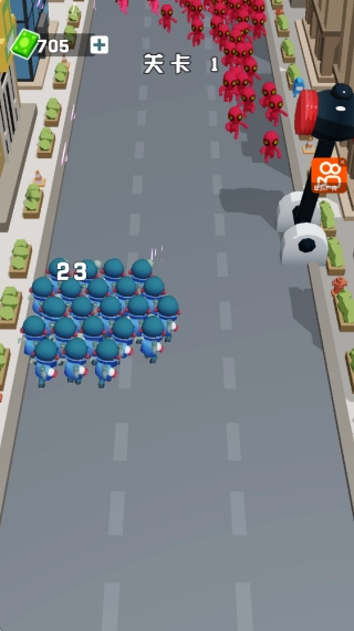 此外,道路上还会出现各种各样的陷阱,我们得留意躲避,确保自己这边的人数,这样才能提高成功闯过关卡的概率。