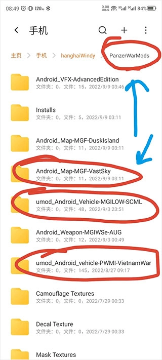 1、(Panzerwarmods文件夹)里面的一个一个的(文件夹)才是MOD本体。游戏只识别这些mod文件夹。