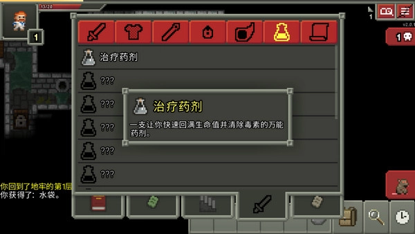 4、不要急着使用未知的药水,把多余的药水卷轴放远一些(注意药水能摔碎、冻碎,用放下不要按扔出)。在水边喝药可以防止液火药水烧伤,也别站在水上喝,这样能防止冰冻药水冻伤。