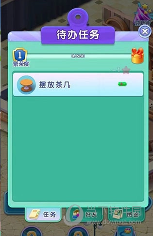 2、下面开始修复奶茶店,先摆放些新茶几,点击任务,开始重建集市,摆放茶几需要消耗1颗红星