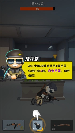 6、战斗中每30秒会获得一颗手雷,玩家可以合理的利用它来帮助自己更好的进行闯关