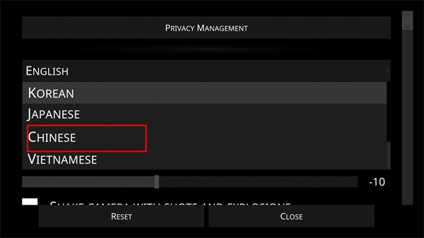 注意:点击Chinese选项时可能会出现短暂卡顿,耐心等待片刻即可。
