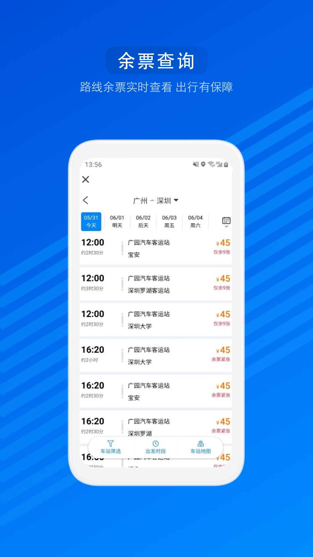 出发地:输入城市名或车站名(支持模糊搜索,如输入上海自动关联上海长途客运总站、上海南站等)。