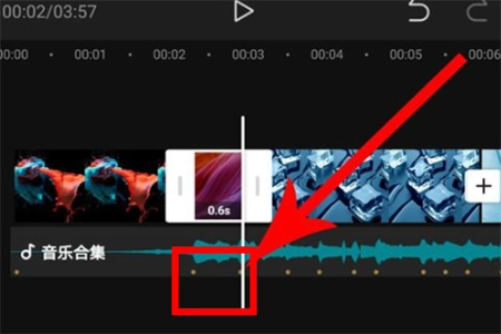 2、导入完成后就能进入“视频编辑”界面,在这个界面里,我们可以点击底部的“音频”功能,接着在下方列表中选择“音乐”按钮,从中找到自己感兴趣的在线卡点歌曲。