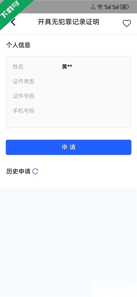 跳转至个人信息页面后点击申请按钮,再依据实际情况选择办理地区和申办事由。