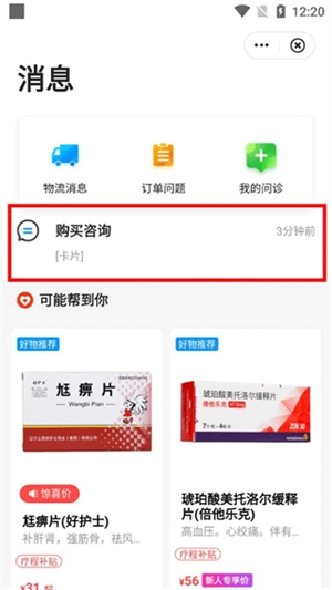 2、在消息页面中,点击“购买咨询”选项。