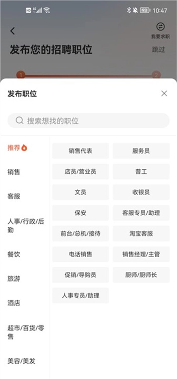 打开发布职位页面后,选择自己想要招聘的【职位】类型。
