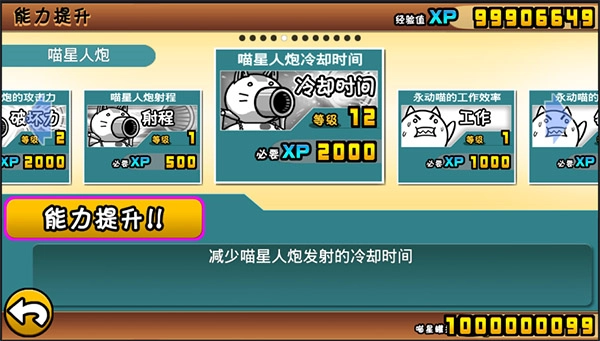 ①科技:猫咪炮射程;猫咪炮CD削减;战斗经济增长加速(效率至关重要,不过会提高每一级升级的经济需求,建议搭配下一项科技使用);猫咪炮攻击力(提升时会增加CD)。需要注意的是,猫咪炮攻击力的升级被安排在最后一项(并非不建议升级!)