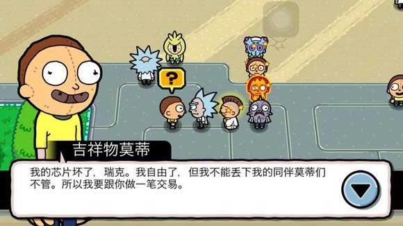 3、morty不同类型的morty前面都标着石头、纸张、剪刀之类的标志,我暂时没搞明白它们之间有什么互相克制的机制,但发现有几个角色的增益效果特别厉害:一号试验品morty、冷血morty、普通morty、泳者morty、拥有石拳的岩肤morty、蓝色T恤morty、和平主义morty。玩到后面四个技能槽都填满后,要是出现新技能,得先看清新技能的属性,如果是攻击类的,一定要把原来的非攻击技能换掉。目前我觉得非攻击技能都没什么用。