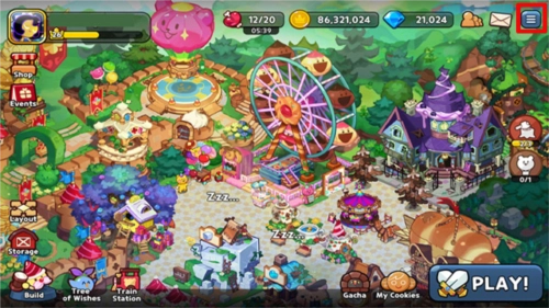 1、完成姜饼人王国新手教程后点击右上角设置三条杠按钮。