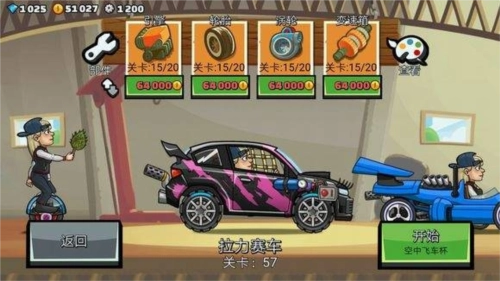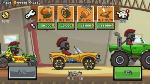 1.登山赛车2在游戏中可以选择各种汽车和摩托车