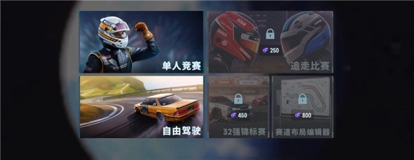 游戏拥有多种模式:除了职业模式,还设有双人赛、Top-32比赛等挑战玩法,玩家能与模仿其他玩家驾驶风格的AI展开竞争。