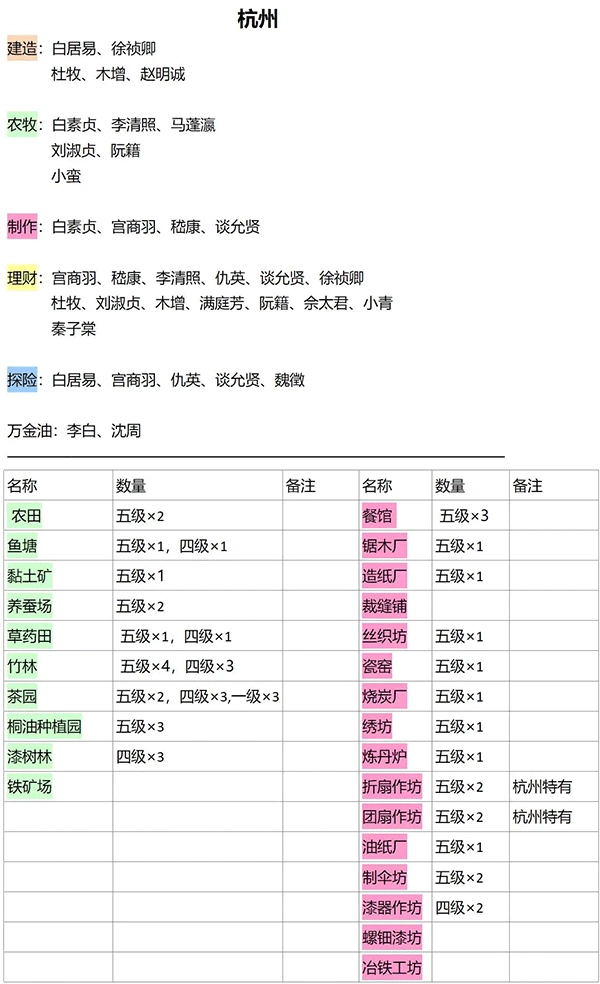 有雕像祝福的生产建筑,如农田、林场、鱼塘、棉花田、餐馆、锯木厂、造纸厂、织布坊、裁缝铺,这些都可以作为重点安排生产内容,基本上应天就是以生产资源为主的,所以我放的生产建筑也比较多。