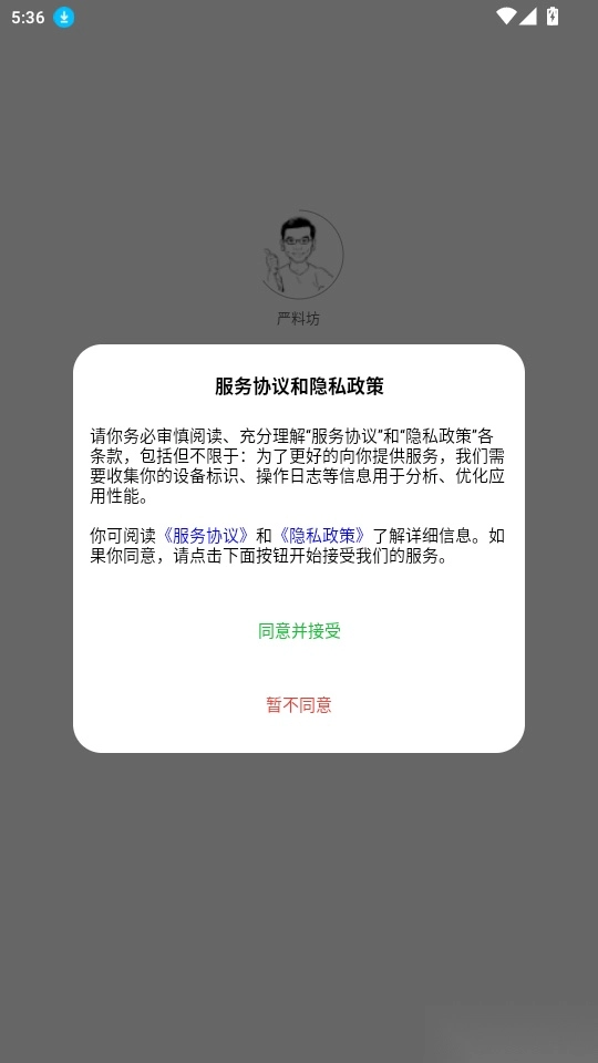 打开软件后,阅读“服务协议和隐私政策”,点击“同意并接受”按钮即可进入。