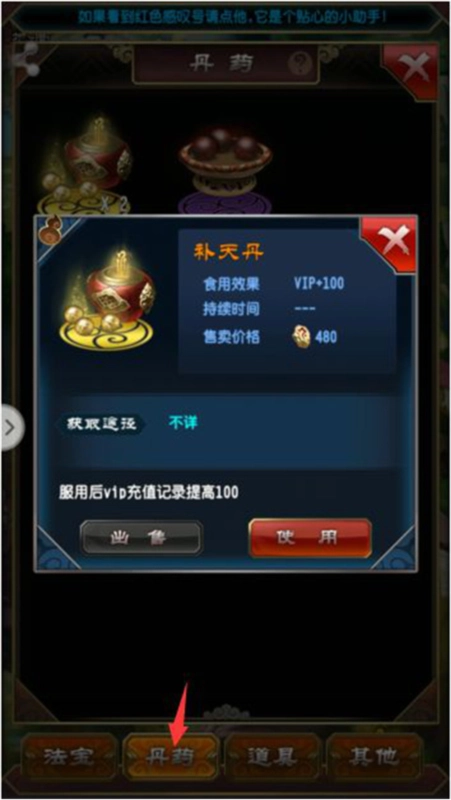 VIP福利道具“补天丹”,使用后能增加100点VIP充值记录。想必很多人都想了解它的领取方式和使用入口,接下来就为大家介绍补天丹的具体领取途径。
