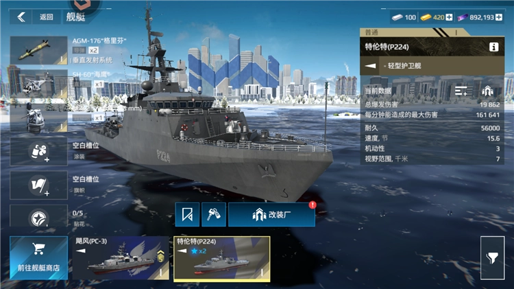 3、领袖级驱逐舰:装备配置均衡,适合多种战斗环境,拥有4个导弹槽和2个火箭炮槽,还配备直升机槽,可执行搜索任务,增加战场信息优势。
