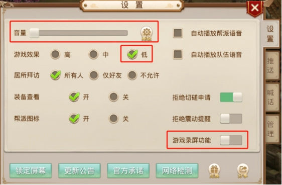 1、游戏录屏.声音设置,游戏效果设置