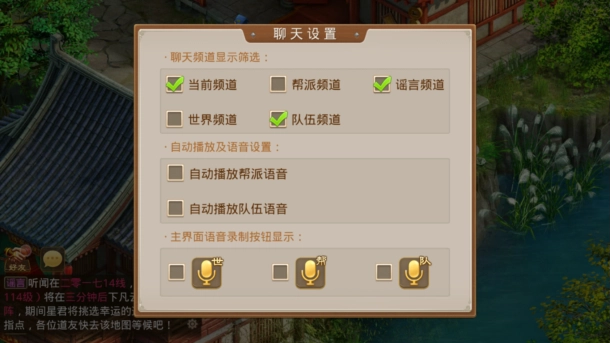 可以屏蔽不必要的语音按键和世界谣言消息,如下图所示也是可以选择性屏蔽的。
