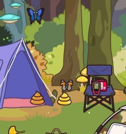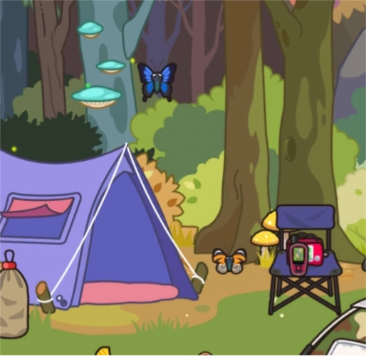 在露营营地,点击蝴蝶可以让它们不要飞掉下来,再次点击继续飞起来。