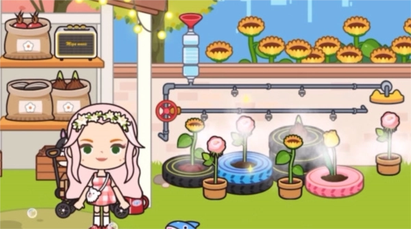 将种子种在花盆里,然后打开水龙头就能种出花花啦。
