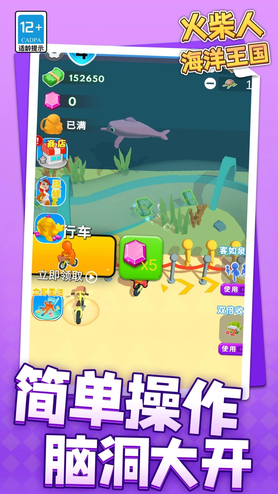 《火柴人海洋王国》是一款充满童趣的探索类模拟经营游戏。它采用清新简约的画风,精心描绘出绚丽多彩的海底世界。玩家将化身为火柴人探险家,在神秘莫测的海底自由穿梭,与各种各样奇妙的海洋生物不期而遇。与此同时,玩家还肩负着建设海洋王国的重要使命,不仅要悉心照料收集到的海洋生物,还要打造出专属于自己的梦幻海底家园。
