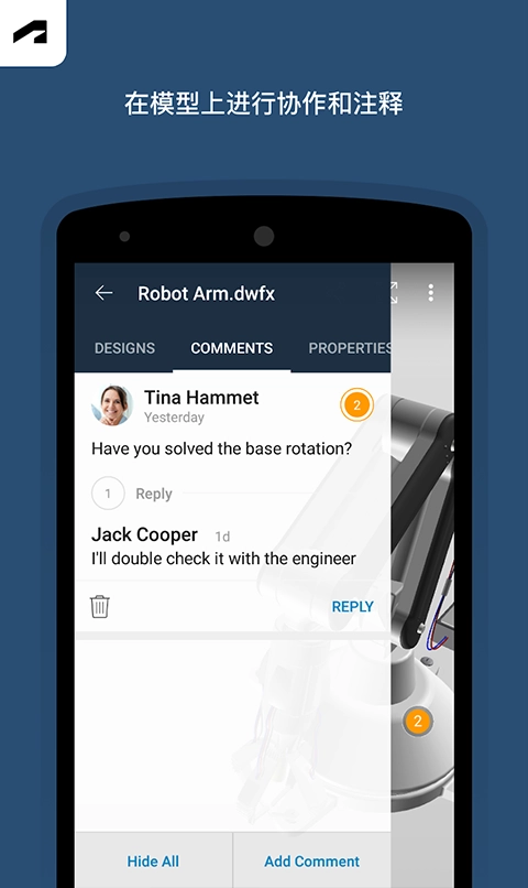 fusion360作为一款工具软件,用户能直接用手机查看自己完成的3D画图项目,也可以通过手机在线绘图,一键就能保存或分享,方便随时处理工作;借助它能加快三维设计进度,还能和内部及外部利益相关方共享内容,甚至可以直接通过软件分享带有标记的设计截图。此外,该程序支持多种文件格式,像DWG、SLDPRT和IPT等都包含在内。