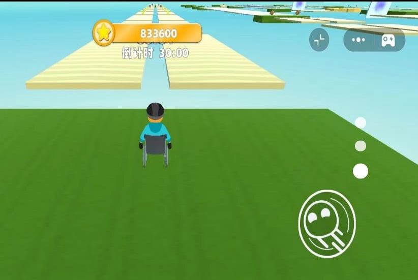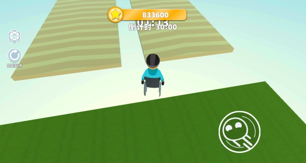 通过虚拟摇杆来操控轮椅的移动方向,同时要依据赛道的高低落差,及时按下跳跃键,以此防止轮椅掉落赛道,从而避免游戏失败。
