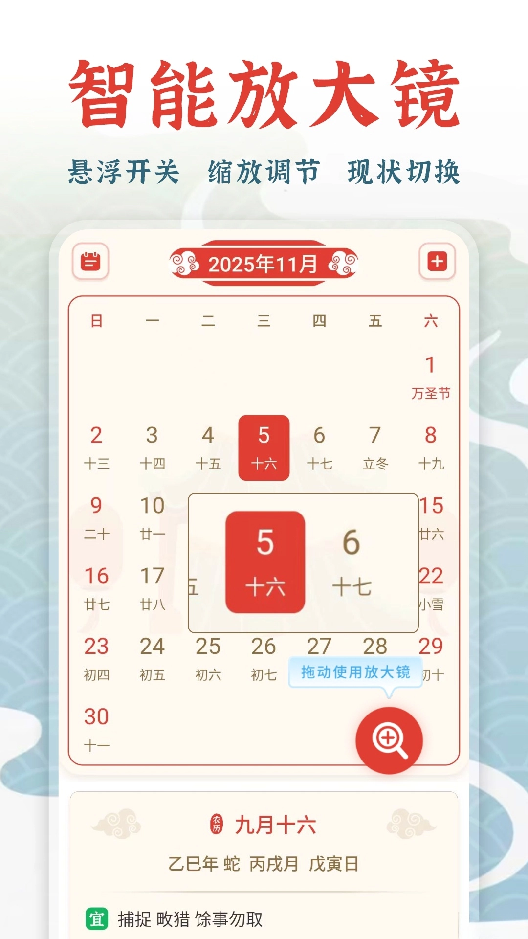 丰富日历实用功能:软件配备了多样的日历实用功能,涵盖黄历宜忌、节日节气、吉日查询、历史查询等。用户能够便捷知晓传统习俗与禁忌,查找重要节日和吉日,也可以回顾历史上的今天所发生的重大事件,充实知识储备。