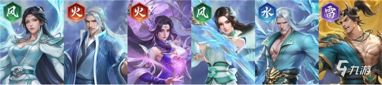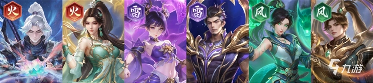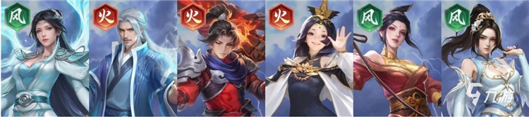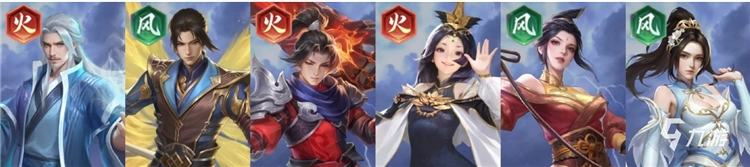 推荐理由:开荒收割队的进阶版,云韵与林修崖一样有着击杀再动的能力,但在单卡强度上云韵要比林修崖强上不少。其他的火、风系角色依旧主要提供羁绊加成触发双源争锋组队buff。本阵容可轻松打到第六章以上。