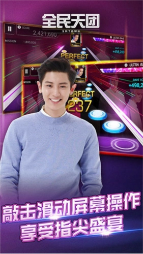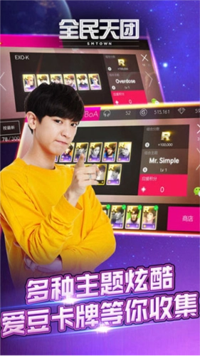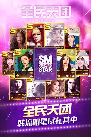 《全民天团》作为韩国SM娱乐正版授权的BTS音乐游戏,核心是围绕34支SM旗下艺人团队、310+首正版曲目、2000+明星卡牌打造沉浸式韩流音乐体验:玩家通过消耗“耳麦”(低于5个时每5分钟恢复1个)闯关收集卡牌,利用G币(依得分和卡片属性获取)合成升级卡片提升属性;参与“超级明星联赛”时,需连续7日挑战每日更换的曲目,以5首最高分数曲目参与每周排名,与20名同等级用户竞争,根据排名决定升降级,还可查看曲目个人纪录与服务器最高纪录;游戏所有章节免费开放,通关送“闪耀明星卡牌”,支持组建“明星FS团”,结合多难度曲目选择、卡组系统对比等特色,满足韩流粉丝集卡、竞技与音乐互动的多元需求。