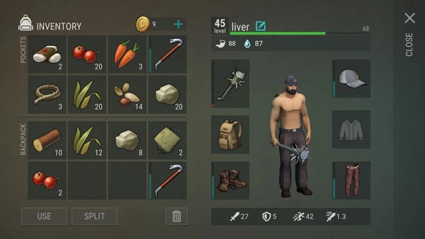 打法思路:刷二级图时要记住“先清野怪,再采集资源”。进图后可以先沿着地图边缘走,利用潜行清理周围的怪物,同时偶尔开启自动模式收集材料。等能单杀的怪物差不多清理完了,就深入地图内部,依靠自带的绷带和食物回血,用“素质三连”硬扛密集的僵尸——不用怕也不用怂,僵尸的伤害其实不高。等所有僵尸都清理干净后,就可以静下心来制作镐子和斧头,开始收集材料了。
